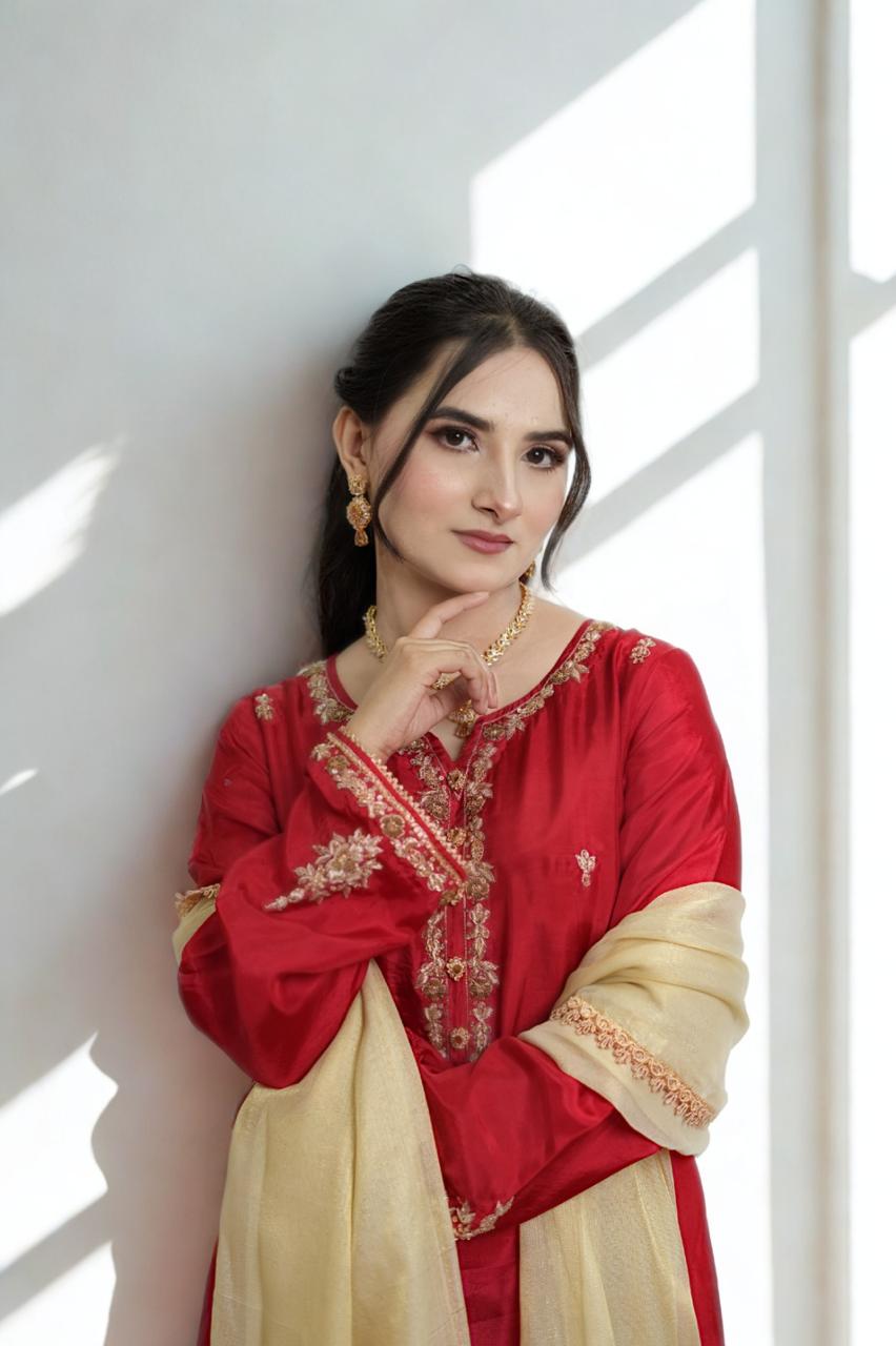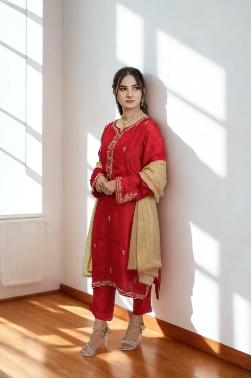 Silk 3-Piece Dress in a mesmerizing red tone. 🌹