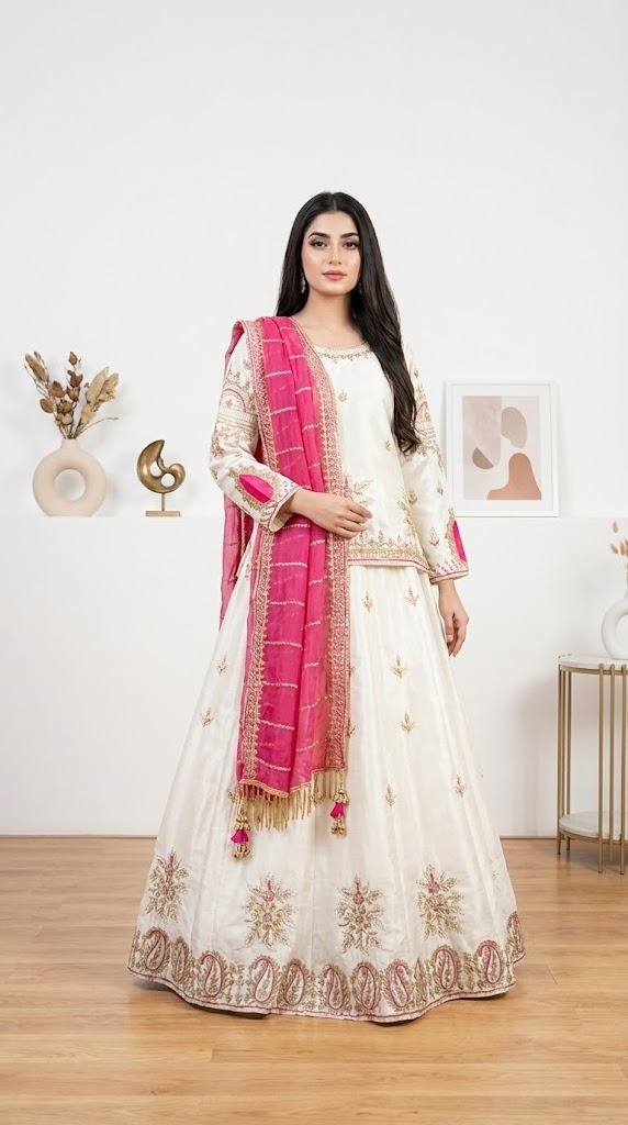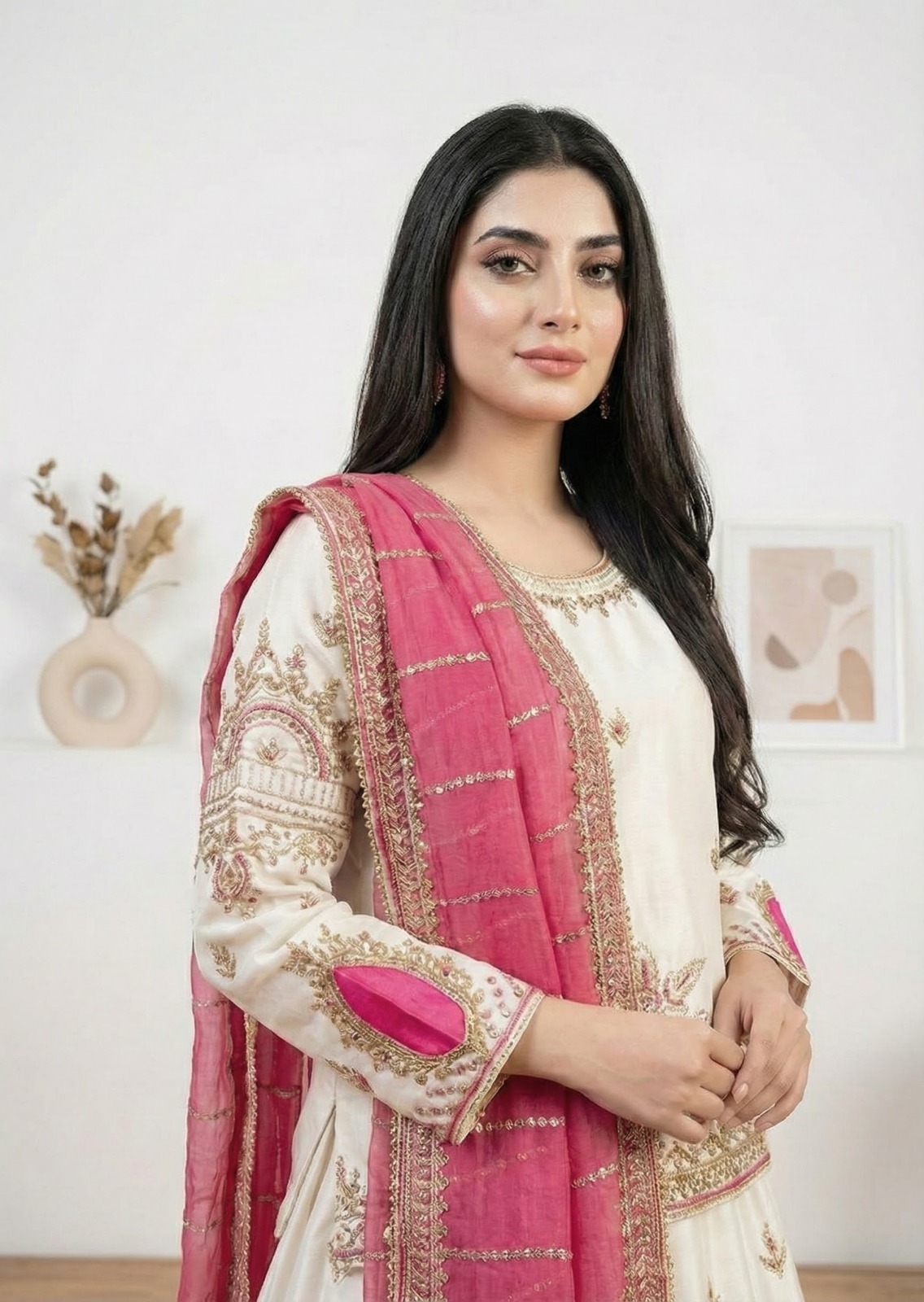 Full handmade work embellished in pearls, sequins and katdana.